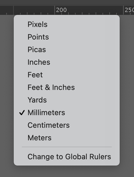 Нажимаете Ctrl + R и на появившейся линейки нажимаете левой кнопкой мыши, выбираете то что вам нужно
