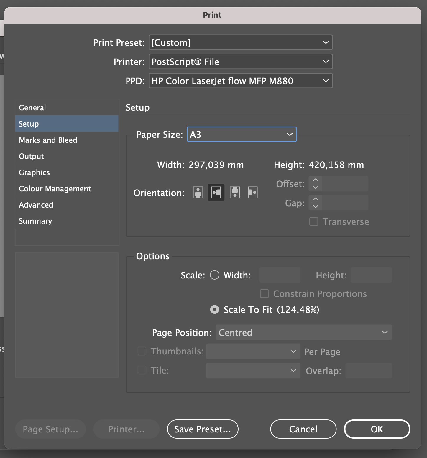 3. Ставим нужный цветовой профиль ( ICC Profile: Euroscale Coated v2 ) (